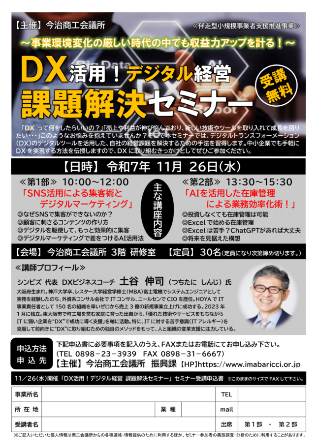 DX活用!デジタル経営課題解決セミナー ご案内チラシ(pdf)