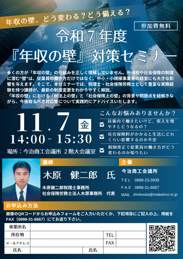 参加をご希望される方は、お電話での事前予約 (TEL 0898-23-3939) 、もしくはFAX、QRコードからお申し込みの上、ご出席くださいますようご案内申し上げます。